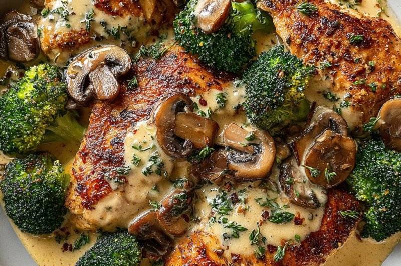 Cremiges Hähnchen mit Brokkoli und Champignons