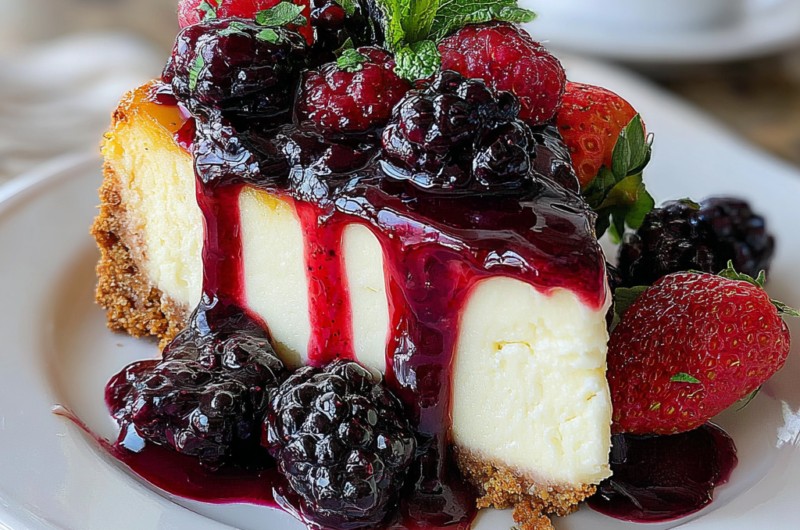 Die Dreifach-Beeren-Sauce ist eine wunderbare Ergänzung zu deinem Käsekuchen und bringt das Dessert auf ein neues Level. Sie kombiniert die Aromen dreier köstlicher Beeren und ist vielseitig anwendbar. Probiere sie nach deinem Geschmack auf anderen Desserts oder einfach pur.